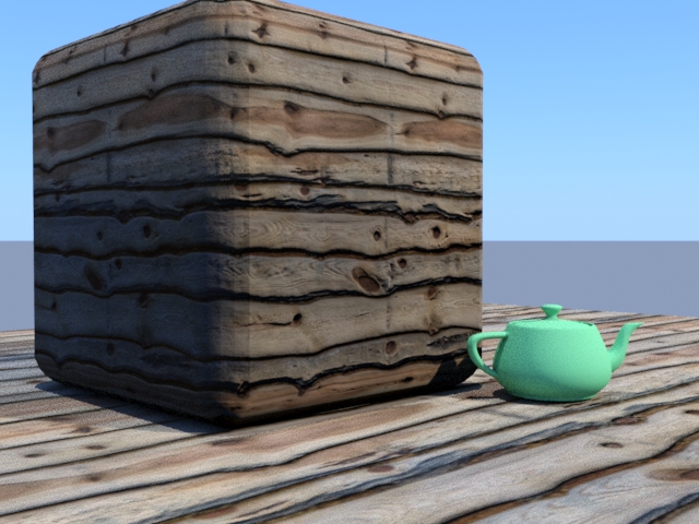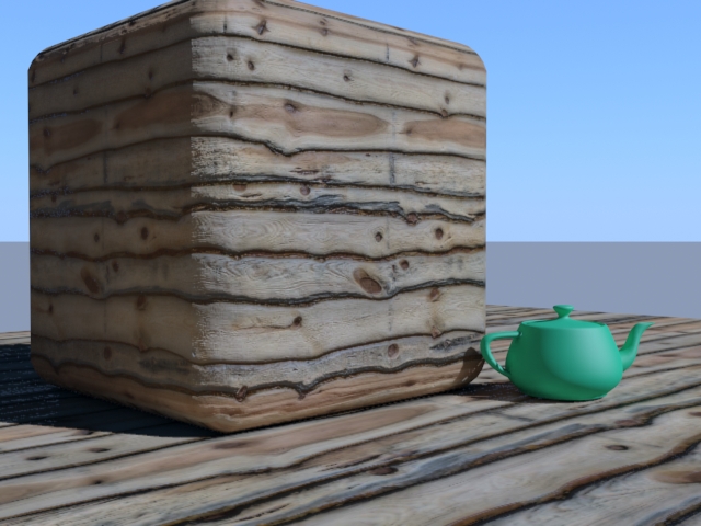 Pour preuve, remarquez l'arète la plus proche de nous de la boîte chanfreinée où les limites des polygones sont très visibles. Etonnamment, le problème n'existe pas en scanline.