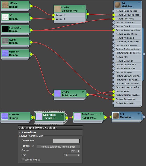 - Matériau Physique avec ajout d'une correction gamma à 2.2 sur la Normal map du sol