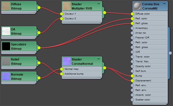 - CoronaMtl avec l'option «add gamma to input» sur les «normal map».