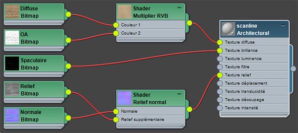 - Architectural avec indice de refraction à 1.2 et ajout d'une correction gamma à 2.2 sur la Relief normal du sol